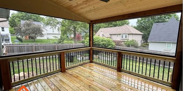 A screened in porch is a patio or deck with a roof and screen surrounding. This type of porch is a great way to have a natural feel to the outdoors without having to worry about all the pesky bugs and direct sunlight.